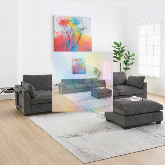 This five-seat sectional in charcoal chenille brings modern versatility and convenience to your living space. Designed with thoughtful details and practical features, it blends clean-lined style with daily functionality — ideal for families, entertainment rooms, or apartments seeking a multipurpose centerpiece.