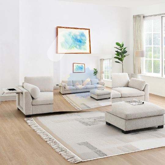 A built-in USB charging station keeps devices powered, while side storage pockets and a hidden folding table enhance convenience without clutter. The included ottoman offers added versatility—serving as a footrest, coffee table, or extra seating. Whether you’re hosting or relaxing, this sectional adapts effortlessly to your space.