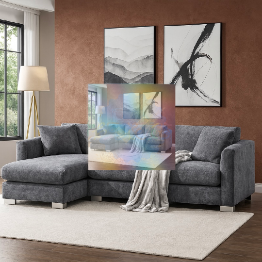 This L-shaped sectional, the olympia is enveloped in soft chenille and supported by a steadfast frame, presents itself as a most sensible companion to modern domestic life. Whether situated in a drawing room, an apartment parlour, or a shared abode, it lends both grace and utility — encouraging repose, companionship, and moments of restful solitude.