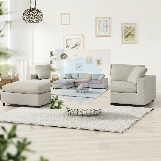 In the Ava Cloude, one discovers a harmony of comfort, flexibility, and elevated form — a composition suited as much for lively gatherings as for quiet repose. Constructed with a sturdy hardwood frame and tailored in a fabric both plush and practical, it lends itself graciously to the demands of daily life, while never sacrificing elegance of appearance.